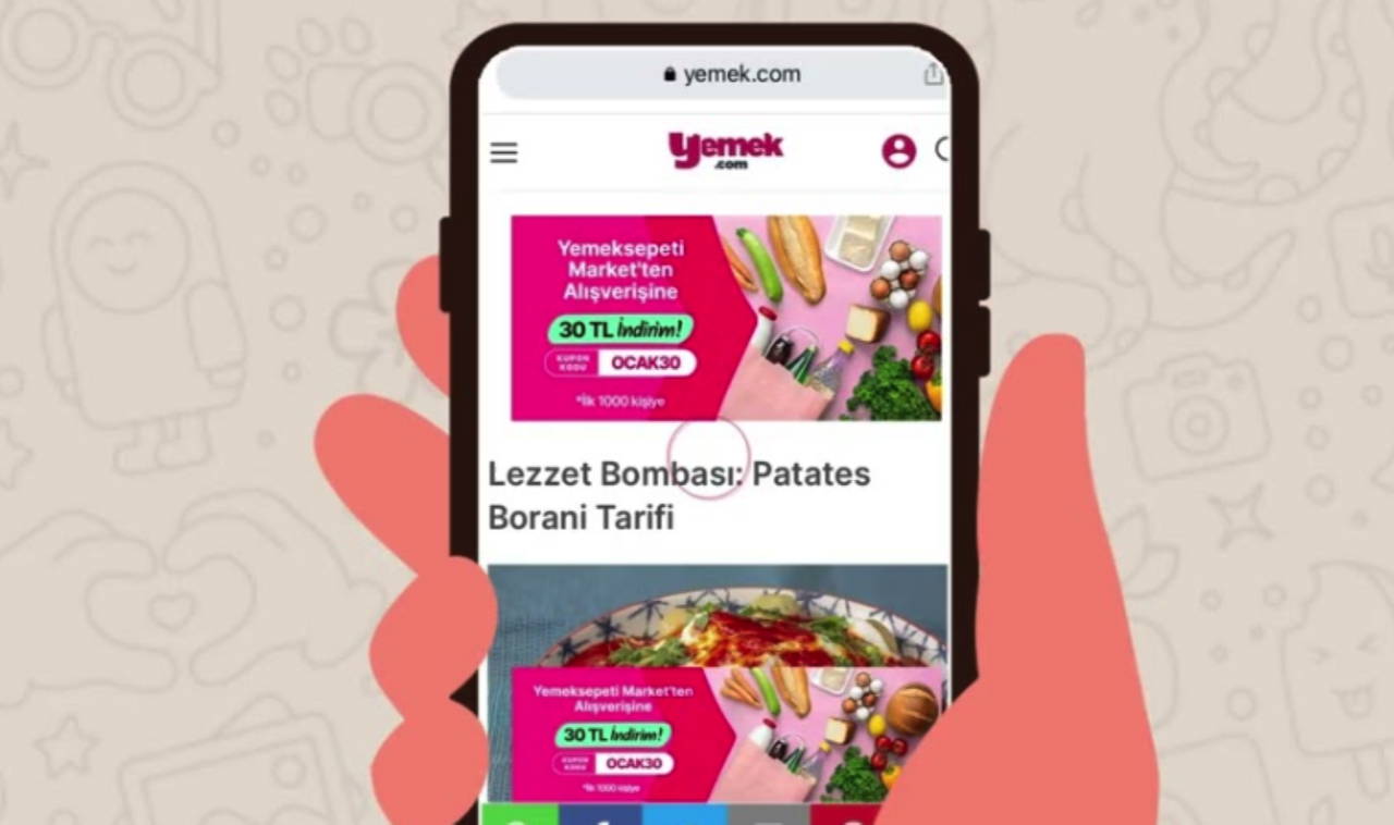 30 binden fazla tarifin yanı sıra eğlenceli ve ilham dolu içerikleriyle, yemekle ilgili olan olanlara dokunan Yemek.com’un WhatsApp üzerinden sunduğu sohbet yazılımı, kullanıcılara ellerindeki malzemelerle hazırlayabileceği yemek tarifleri öneriyor. Yemek.com'un editoryal ekibi tarafından özel olarak hazırlanmış olan bu tarif içerikleri, kullanıcılara ilham verecek zengin öneriler ve püf noktalarıyla da fark yaratıyor.