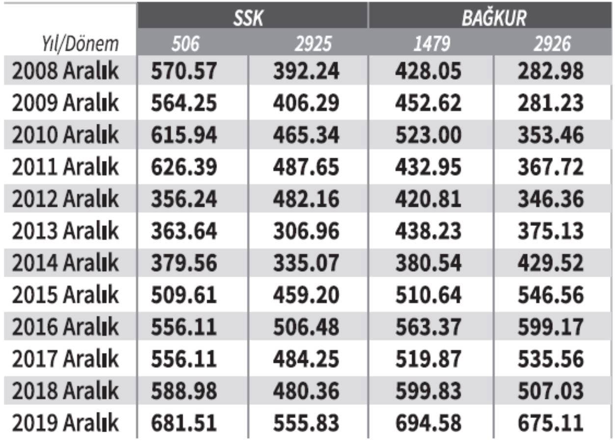 SGK tarafından 2008/Ekim sonrası bağlanan ve sistemde ödenen en düşük emekli aylıkları tabloda görülüyor.