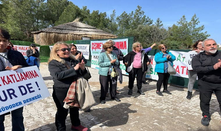 İzmir’in turistlerin en uğrak yerlerinden olan Çeşme ilçesinin dünyaca ünlü Aya Yorgi Koyu’nda Hazine arazisinde izinsiz yapılan inşaatın protesto edildi. Hem arkeolojik hem de doğal sit alanı olan bölgeyi kapatarak ağır iş makineleriyle tarih eser ve endemik bitkilere zarar verenlerin durdurulmasını isteyen çevreciler, “Aya Yorgi’de katliam var” diyerek bölgede bir basın açıklaması gerçekleştirdi.