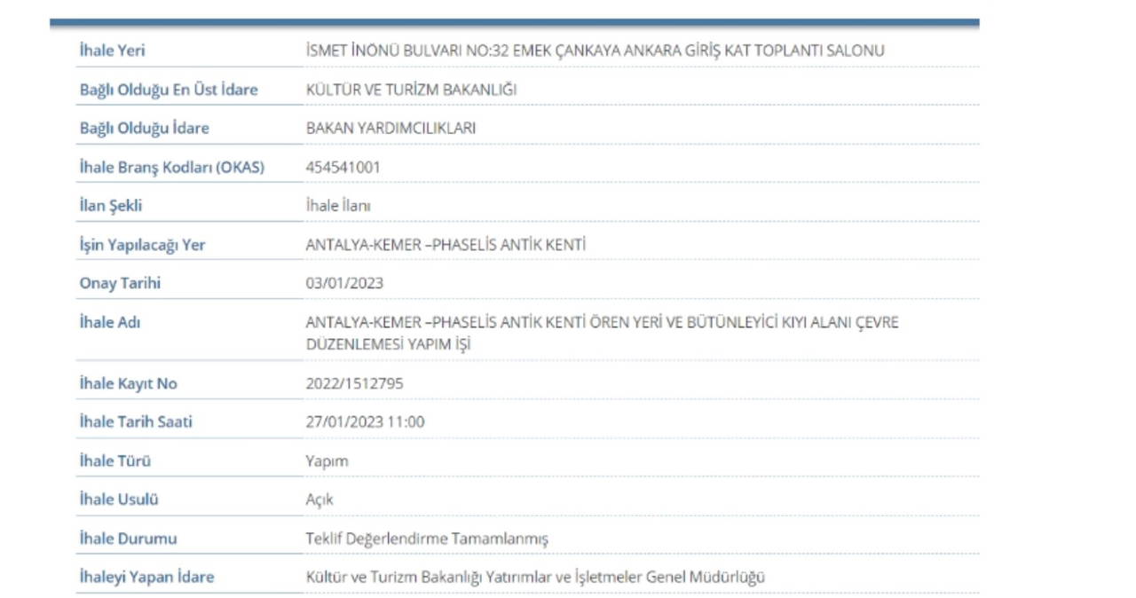 Kültür ve Turizm Bakanlığı, sahil kentlerinde uygulamaya koyduğu halk plajlarını yaygınlaştırmak için çalışmalarını sürdürüyor. Bu kapsamda Antalya’nın Kemer ilçesinde inşa edilmesi planlanan iki ayrı halk plajına ilişkin ‘Kemer-Phaselis Antik Kenti Ören Yeri ve Bütünleyici Kıyı Alanı Çevre Düzenlemesi’ başlığı ile ihaleye çıkıldı. 30 Ocak 2023 tarihinde sonuçlanan ihale İstanbul merkezli Se-Fa Restorasyon Sanayi İnşaat Ticaret Ltd. Şti. firmasına verildi.