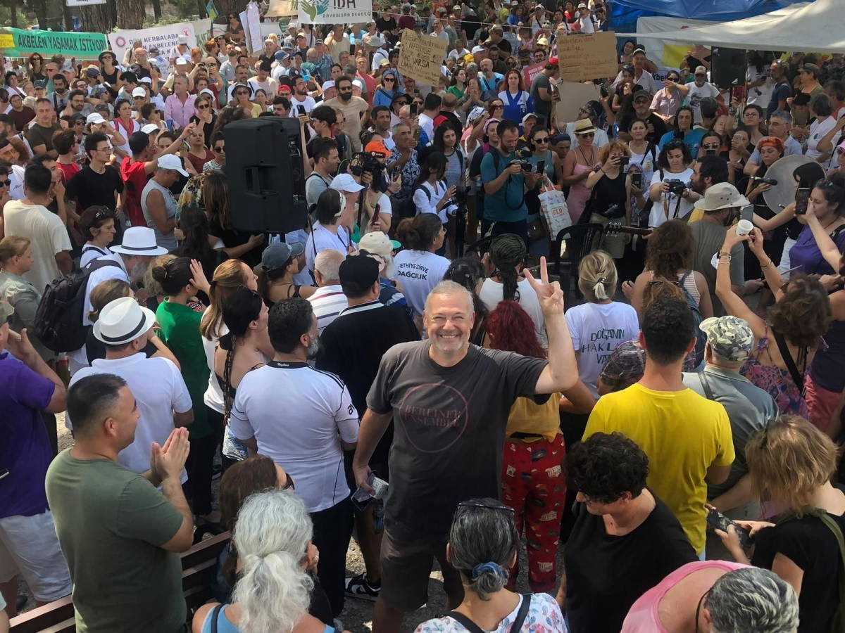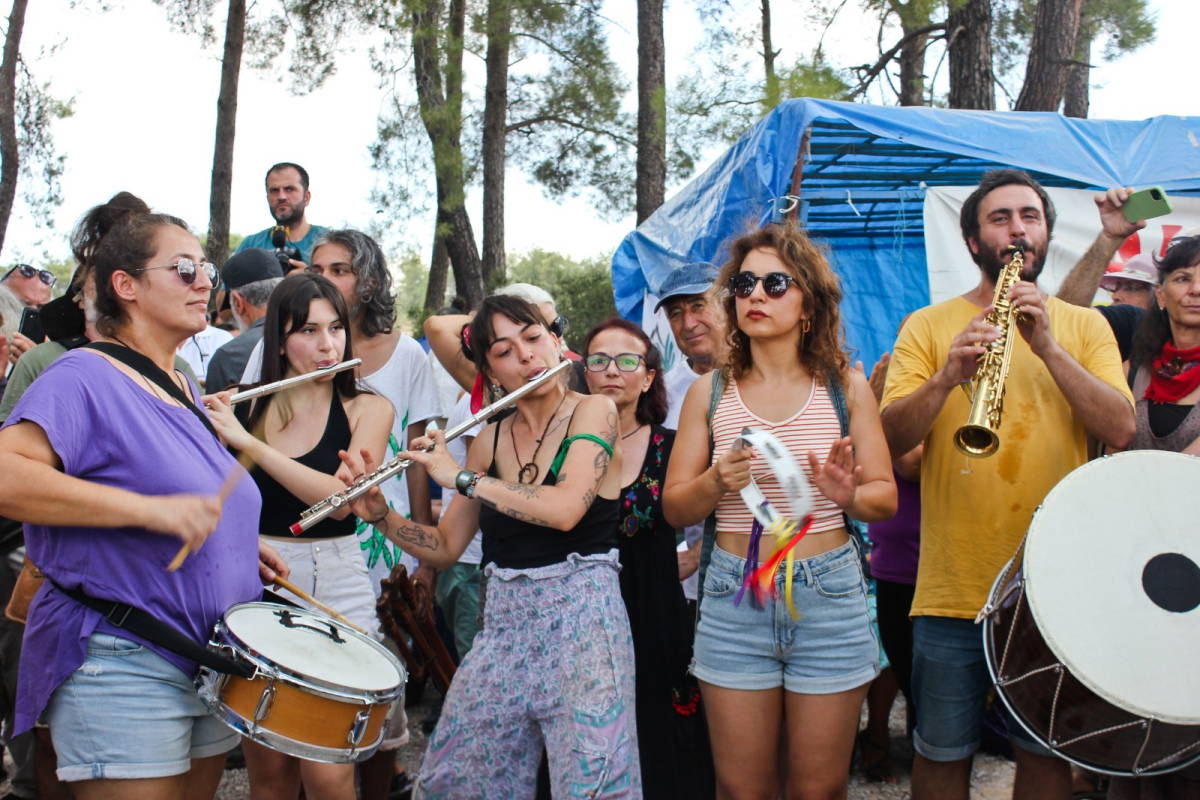 Direnişe ilk günlerden beri bölgede olan CHP Genel Başkan Yardımcısı Semra Dinçer ve beraberindeki CHP’li milletvekilleri de geldi. Oyuncu Levent Üzümcü ve Mert Fırat da Akbelen’e destek için alandaydı. Tolga Çandar ise Akbelen direnişine türküleriyle destek verdi. Çandar’ın türkülerine İkizköylü kadınlar danslarıyla eşlik etti.