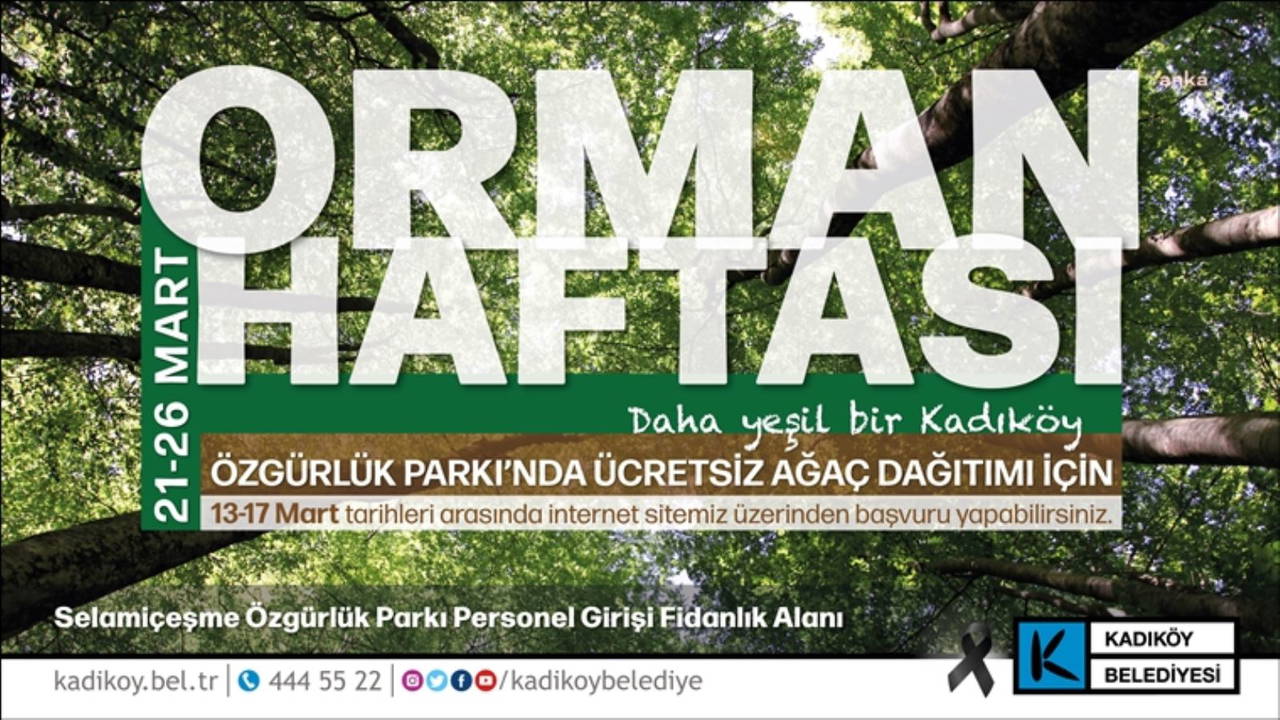 Kadıköy Belediyesi Park ve Bahçeler Müdürlüğü’nün 21 – 26 Mart Orman Haftası kapsamında "Daha yeşil bir Kadıköy için" sloganıyla hayata geçirdiği projeyle, ilçede bulunan apartmanların bahçelerine dikilmek üzere ücretsiz ağaç dağıtımı yapılacak.