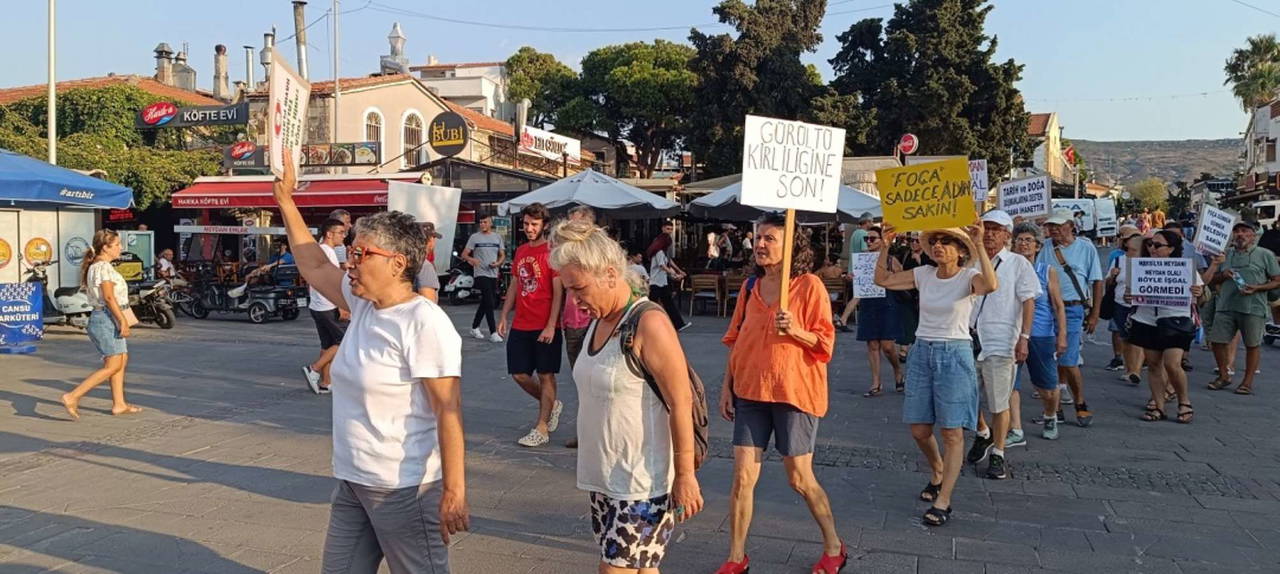 İzmir’in turistik İlçesi Foça’da tarım alanlarının imara açılması, sokak, meydan, yaya kaldırımları ve deniz kıyılarının gasp ve işgalleri, gürültü, çevre ve deniz kirlilikleri protesto edildi. Foça Tarih ve Doğa Talanına Hayır Platformu üyelerinin ilçeyi bir uçtan diğer uca yürüyerek yaptığı eylemde kentin yaşanmaz hale geldiği belirtilerek yetkililer göreve davet edildi.