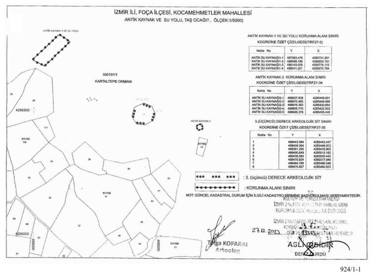 Antik taş ocaklarının çıktığı bölge 3’üncü derece arkeolojik SİT ilan edilirken antik su kaynağı ve su yolu kalıntıları ise birinci grup korunması gereken taşınmaz olarak ilan edildi. Karar Resmi Gazete’de yayımlanırken tapuya şerh olarak düşüldü.
