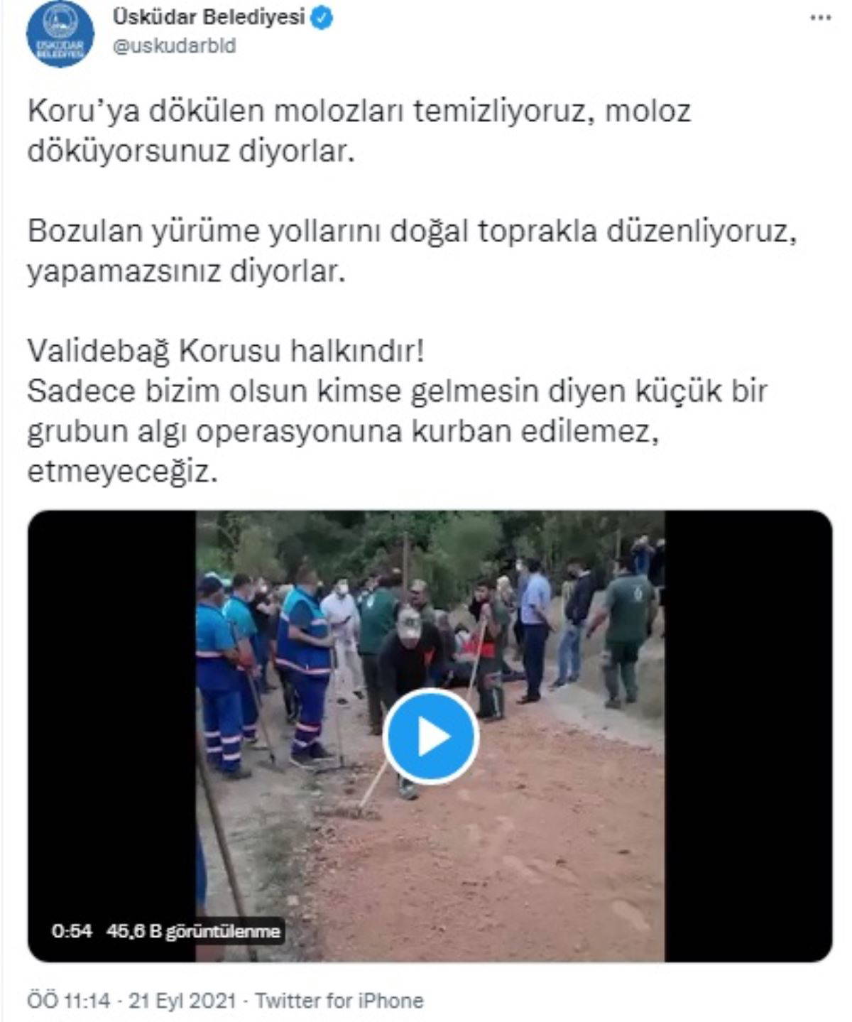Büyük tepki çeken olayla ilgili olarak Üsküdar Belediyesi'nin sosyal medya hesaplarından kısa bir açıklama ve bir de koruda yapılanlarla ilgili bir video paylaşıldı.