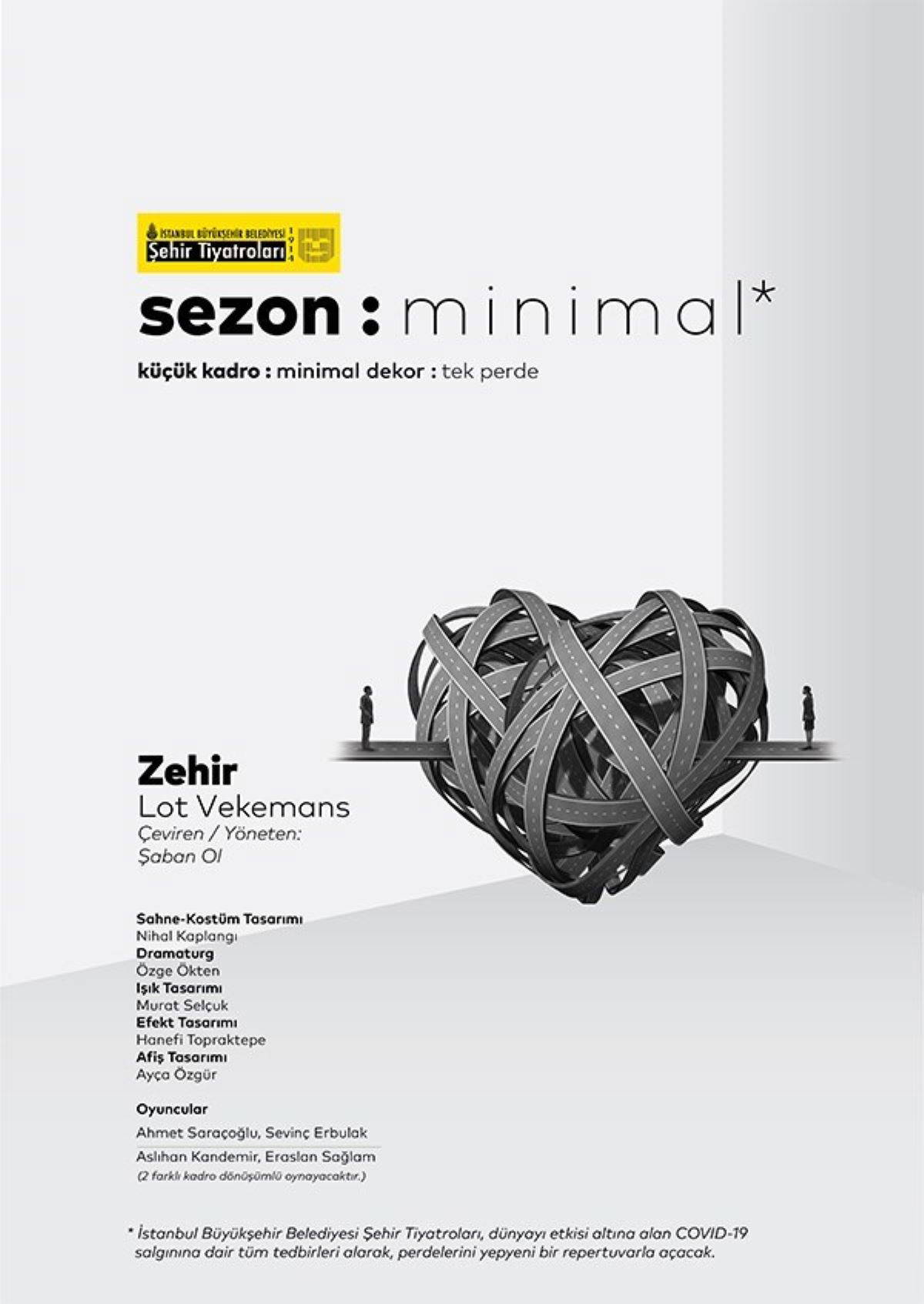 İ.B.B. Şehir Tiyatrolarının bu sezon izleyici karşısına çıkardığı bir başka oyun olan “Zehir” Lot Vekemans tarafından yazıldı. Oyunun yönetmeni aynı zamanda çeviriyi yapan Şaban Ol. Oyuncu kadrosunda Aslıhan Kandemir ve Erarslan Sağlam’ın bulunduğu oyunda sahne kostüm tasarım Nihal Kaplangı’ya, müzik Sinan Arslan’a, ışık tasarım Murat Selçuk’a, efekt tasarım ise Hanefi Topraktepe’ye ait.