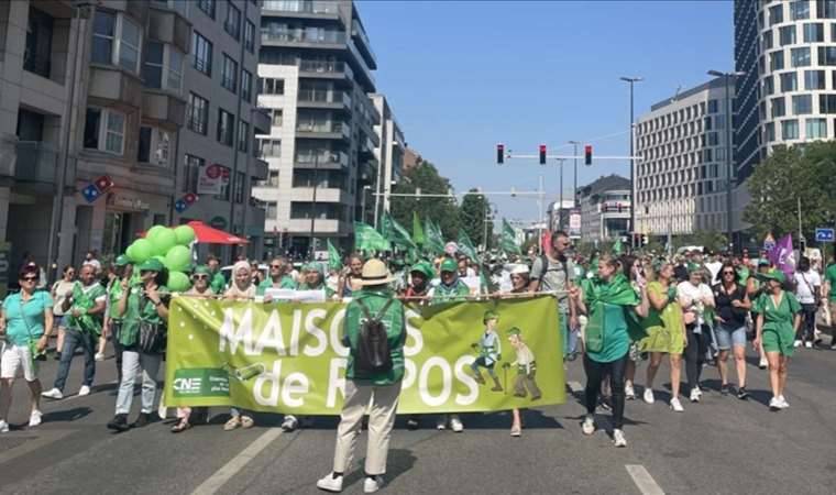 They marched to the Brussels-South railway station about 3 kilometers (about 1.86 miles) southwest, calling for solidarity with healthcare professionals and accessible care.