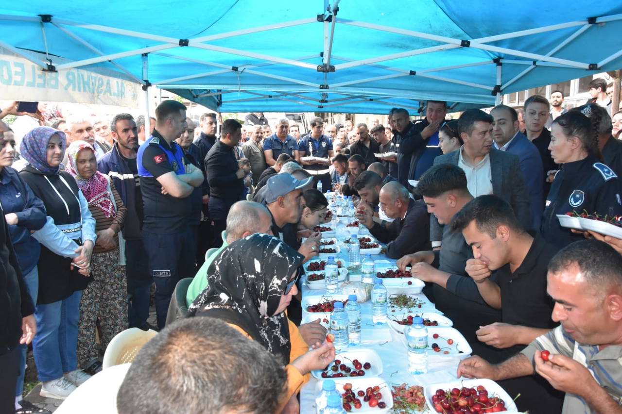 Manisa'nın Alaşehir ilçesinde, Uluderbent Kiraz Festivali renkli görüntülere sahne oldu. “En Çok Kiraz Yeme Yarışması”na 26 yarışmacının katılırken 10 dakika içinde en çok kirazı yiyen Dursun Gökçen birinci oldu. Bando takımı eşliğinde Cumhuriyet Caddesi üzerinden kortej yürüyüşü ile başlayan festivalde cadde boyunca esnafın kurduğu stantlarda yöresel ürünler tanıtıldı. Yarışmada, yarışmacıların önüne 1’er kilogram kiraz konuldu ve sadece su içmelerine izin verildi. Yarışmacılar, 10 dakika içinde en çok kirazı yemeye çalıştı.