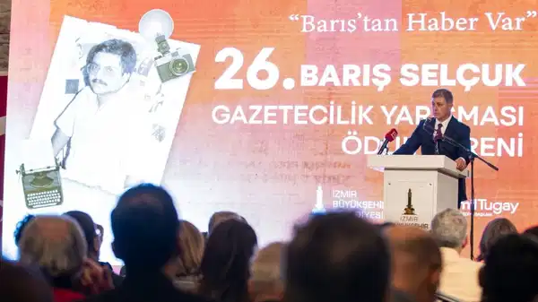 Törenin açılış konuşmasını yapan Başkan Dr. Cemil Tugay, sözlerine yaşamını yitiren Barış Selçuk ve Hande Mumcu’yu anarak başladı. Gazetecilerin Türkiye’de ciddi baskılar altında mücadele verdiğini söyleyen Başkan Tugay, “2025 yılı Basın Özgürlüğü Raporu’na göre; gazeteciler son bir yıl içinde 610 kez mahkeme salonlarında yargılandı. 95 gazeteci gözaltına alındı, 39’u tutuklandı. RTÜK tarafından dört televizyon kanalına toplam 92,7 milyon lira idari para cezası kesildi. Uluslararası Sınır Tanımayan Gazeteciler Örgütü’nün yayımladığı Basın Özgürlüğü Endeksi’nde ise Türkiye, 180 ülke arasında 159’uncu sırada yer aldı. Gazeteciler arasında işsizlik oranı yüzde 20’nin üzerinde. Bütün bu tabloya rağmen şunu büyük bir inançla söylüyorum; bu ülkede gazetecilik hâlâ yaşıyor. Çünkü arkadan gelen genç gazetecilerimiz, filizlerimiz var. Gerçeğin peşinden gitmekten vazgeçmeyen insanlar var” diye konuştu.