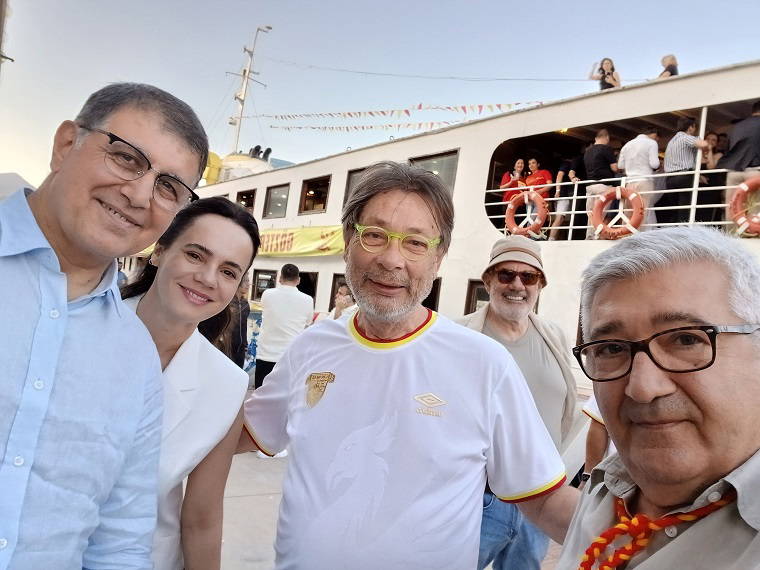 Göztepe’nin efsane teknik direktörü Adnan Süvari’nin hayatta olan futbolcuları Ceyhan Yazar, İsmail Sütçü, Cudi Vergili, Ali Çağlar (K. Ali), Cenap Öztezel, Özer Yurteri, Ulvi Derin kutlamaların en göbeğindeki isimlerdi. Göztepe efsanelerinden Bombacı Halil’in kızı İlgi Kiraz da geceye değer katan isimlerdendi. İsimlerini saydığım efsane futbolcuların hemen hepsiyle gündelik yaşamda da Güzelyalı’da beraberiz. Maçlarda da bir arada oluyoruz. Küçüklüğümde ve ilk gençlik dönemimde Mithatpaşa Stadı’nda maçlarda izlediğim bu efsanelerle aynı havayı solumak, ahbap olmak gerçek bir ayrıcalık şimdi. Fuji Mehmet (Türken), geçirdiği Yakın zamanlarda, son yıllarda peşpeşe kaybettiğimiz Halil Kiraz (Bombacı), Ertan Öznur (Şam Şeytanı), Nevzat Güzelırmak (İngiliz) ve Fevzi Zemzem (Buldozer) ile de semtte, kulüpte, maçlarda beraber oluyorduk ve maalesef tabutlarına Gürsel Aksel Stadı’nda omuz vermek de varmış kaderde. Son olarak efsanelerden Mehmet Işıkal’ı (Papi) ve B. Mehmet’i (Aydın) kaybetmiştik. B. Mehmet, kayınpederim Av. Ali İhsan Soyhan’ın yakın arkadaşıydı ve Göztepe’nin Son Dört Sezonu kitabımı kayınpederim armağan etmişt kendisine. Onları hatırlamamak olmazdı bu özel gecede. Adil Artuner, Göztepe Müze Müdürü olarak ve aynı zamanda efsane Göztepe’nin milli kalecisi Ali Artuner’in kardeşi olarak teknedeydi. Dönüşte beraber geçtik Güzelyalı’ya.