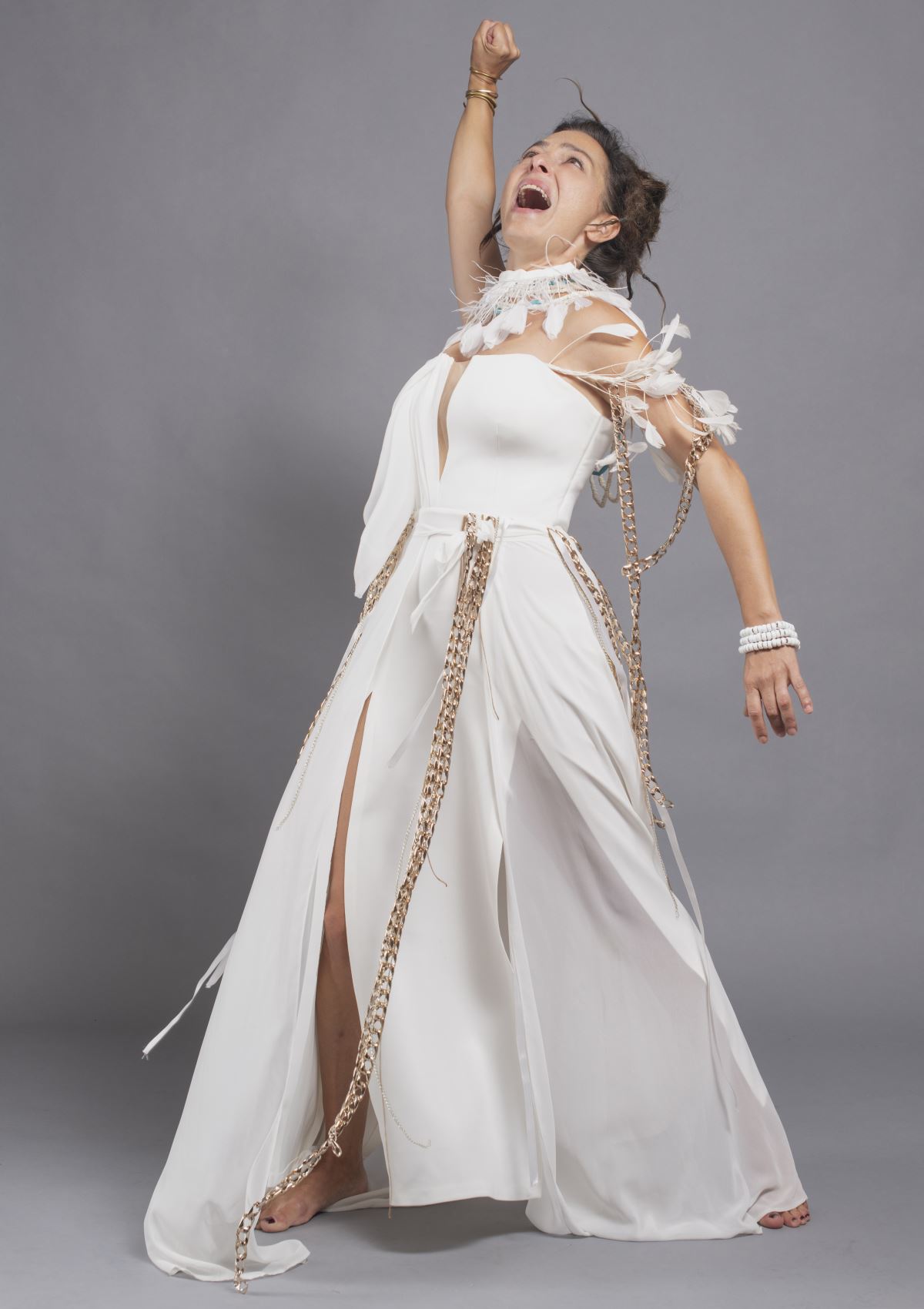 Feri Baycu Güler ve Görkem Yeltan projeyi birlikte yapmaya karar verip çalışmaya başladıktan sonra oynamam için beni işe dahil ettiler. O sırada pandeminin en zor günleriydi ve hepimiz başka şehirlerdeydik. Oyunu Yıldız Hoca’nın ölüm yıldönümüne denk gelen İstanbul Tiyatro Festivali’ne yetiştirmek için işe giriştik ve önce online olarak provalara başladık. Zorlayıcı ama hepimize farklı edinimler kazandıran değişik bir tecrübe oldu. 16 kadının her birinin ayrı dönemler içinde var olduğunu da düşününce elbette kolay olmadı. Hiçbirinin birbirine benzememesi üzerine çok kafa patlattık ve farklı biçimlerde yol aldık ki ayrımı biçimsel olarak da ortaya koyabilelim. Zor ama çok zevkli yolculuk umarım bu oyunu uzun yıllar oynamaya devam edebilirim. Sahnede tek başına olmak da gerçekten kolay değil. Kalabalık oyunlarda ya da iki kişilik oyunlarda sahnede birlikte nefes alıp verdiğiniz rol arkadaşlarınızla birbirinizin eli, kolu, yarısı gibi oluyorsunuz oyun sırasında. Tek başına olmak demek tek başına mücadele etmek demek. Ben bu oyunda hep kendimle mücadele halindeyim, en büyük yoldaşım seyirciyle kurduğum enerjisel ilişki. Bu ilişki beni yukarı çekiyor ve devam etme gücü veriyor. Tabii ki büyük bir kısmı da çalışmakla ilgili. Çalıştıkça ve oynadıkça kendinizi daha iyi hissedip, seyirciyi kucaklamaya başlıyorsunuz. Bu noktada da zaten bu mesleği yapma sebeplerimden biri gerçekleşmiş oluyor. Yani seyirci ile kucaklaşma ve bu kucaklaşmayla sahnede var olma hali ve onun yaşattığı haz.