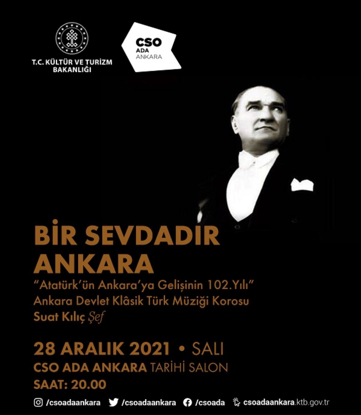 Ankara Devlet Türk Halk Müziği Korosu’nu ve Devlet Halk Dansları Topluluğu’nu şef Necmi KIRAN yönetiminde bir araya getiren konser, 27 Aralık saat 20.00’de CSO Ada Ankara Tarihi Salon’da Ankaralılar ile buluşacak.