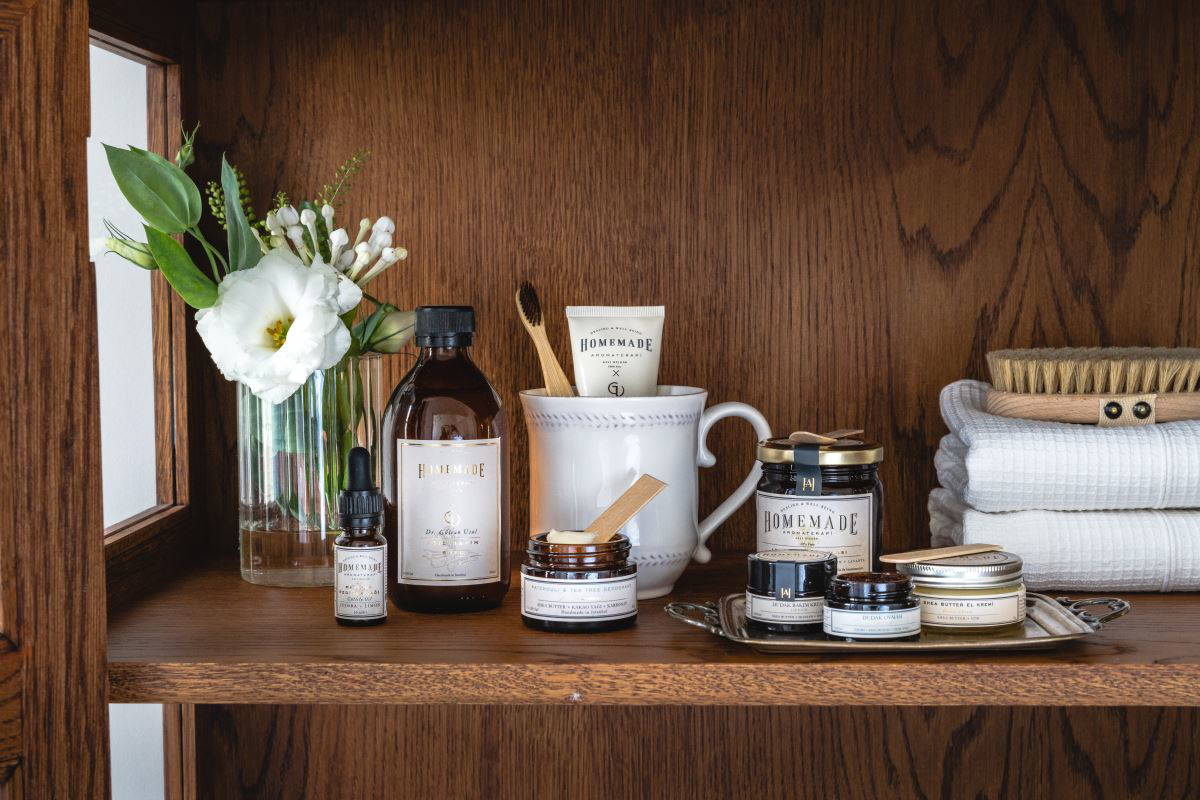 - Homemade Aromaterapi mağazalarının zaman yolculuğu tadında bir tasarımı da mevcut. Eski eczaneleri andıran mağazalarınızda vintage parçalar da var bildiğim kadarıyla.