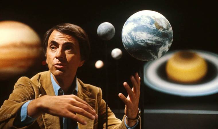açıcı “Cosmos” belgeseli ve kitabının yaratıcısı Carl Sagan uzaya, içinde