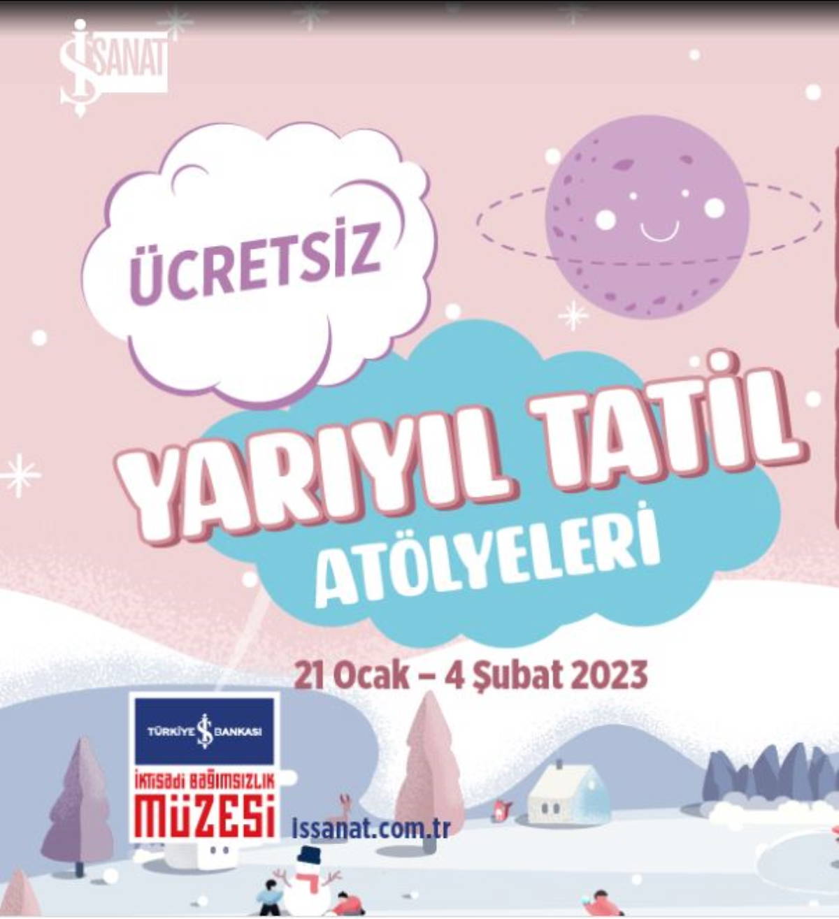 İşSanat, yarıyıl tatilinde olan çocuklar için 4 Şubat’a kadar sürecek bir dizi atölye çalışmasını minik sanatseverlerle buluşturuyor. 5-7 yaş grubuna hitap eden ve 60 dakika süren atölyede, müzenin bölümlerini eğitmenler eşliğinde gezen çocuklar farklı oyunlarla etkinliği tamamlıyorlar. Atölyelere katılım ücretsiz, ayrıntılı bilgi İşSanat’ın internet sitesinde.