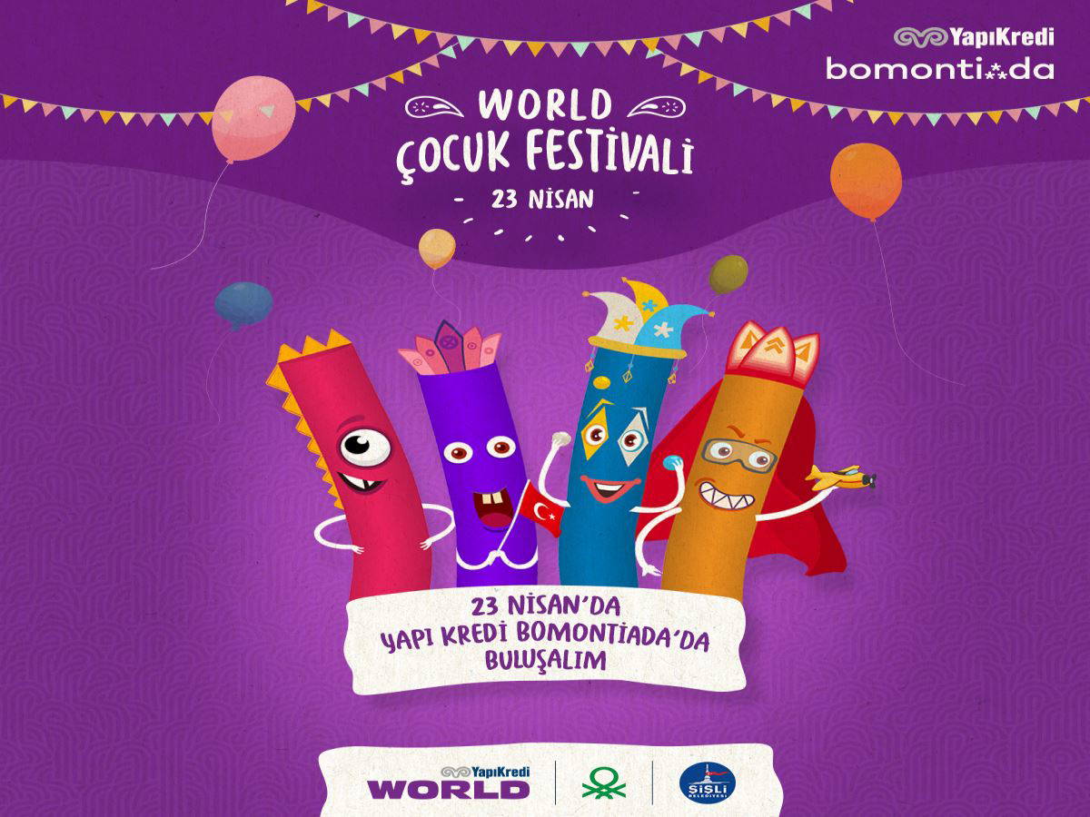 23 Nisan Ulusal Egemenlik ve Çocuk Bayramı kutlamaları kapsamında bugün, Yapı Kredi bomontiada “World Çocuk Festivali” düzenliyor. Gün boyu sürecek festivalde, kukla atölyesi, rastgele objelerden oyuncak yapımı, yüz boyama standı, caz konseri ve sihirbazlık gösterisi gibi etkinlikler yapılacak. 12.00 – 18.00 saatleri arasındaki etkinliklerin tümü ücretsiz.