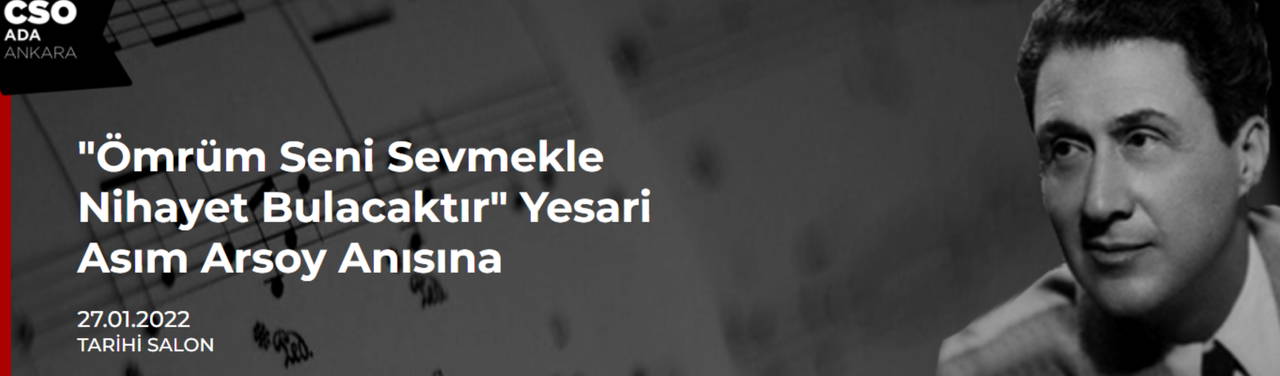 “Ömrüm Seni Sevmekle Nihayet Bulacaktır” eseriyle hafızalardan çıkmayan Klasik Türk Müziği bestecisi Yesari Asım Arsoy, vefatının 30. yılında özel bir etkinlikle anılıyor. Usta bestecinin sevilen şarkılarından oluşan repertuvarın Ankara Devlet Klâsik Türk Müziği Korosu sanatçılarınca seslendirileceği konser, 27 Ocak saat 20:00’da CSO Ankara Tarihi Salon’da.