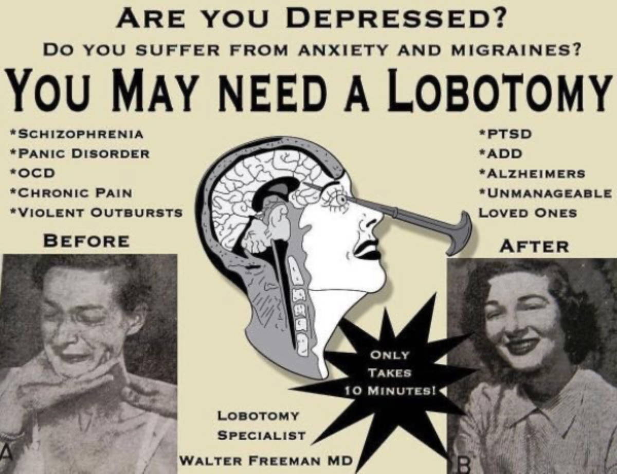 Tıpta günbegün olan gelişmelere şahit olsak da çok da uzak olmayan geçmişte şimdi “ilkel” sayılan uygulamaları görmek mümkün. Bundan 70-80 yıl önce basit bir melankolinin tedavisi olarak size meraklanmamanızı, sadece beyninizin bir bölümünü keserek bunu tedavi edeceklerini söyleseler ne hissederdiniz acaba?