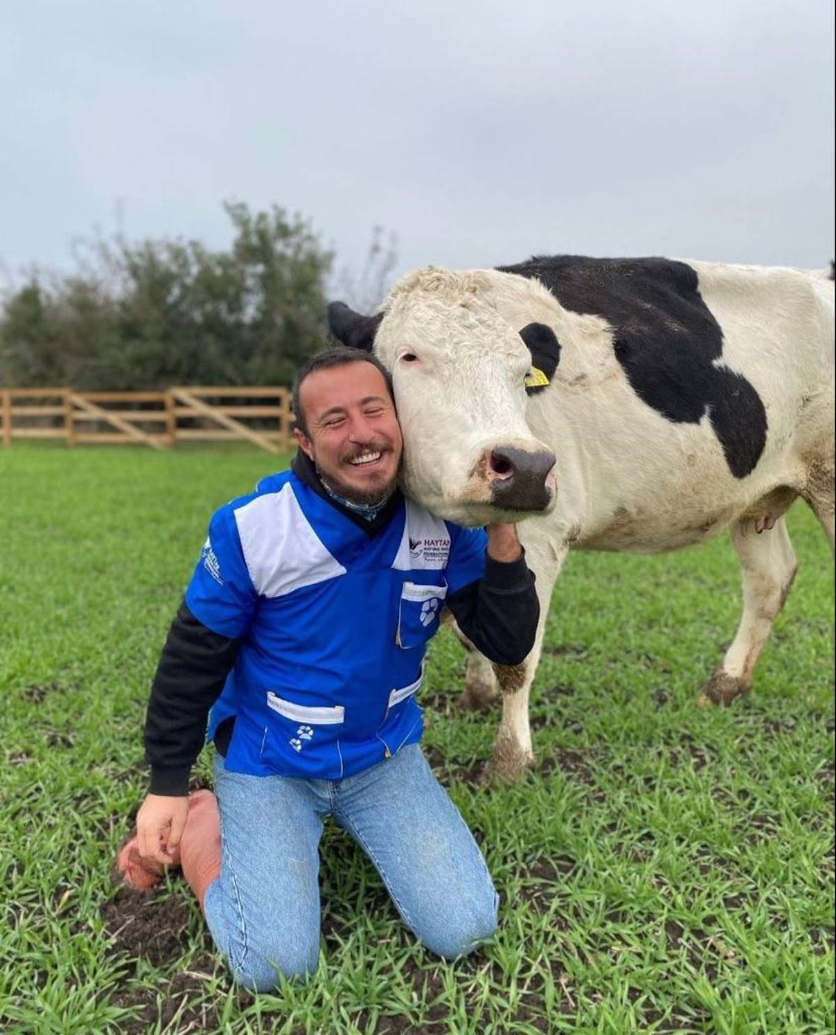 Hepsi çok başka. Ama mesela, Zeynep’le, Burak’ı çok seviyorum. Çoğu kişi hatırlar, Haymana’da, yavrusunu köpeklere parçalatmışlardı. Sosyal medyada videosu vardı ve çok tepki almıştı. Yavru öldü, ama annesi Zeynep bize hamile geldi ve burada bir yavrusu daha oldu. Şenay inek ve kızı Damla, onları çok seviyorum, Naz ve Kiraz var sonra... Naz, Manavgat’taki yangından kurtarılmıştı, ölümün kıyısındaydı, tedavisi aylarca Ankara’da sürdü. Tedavi sırasında, doğum yaptı. Şimdi yavrusu Kiraz'la çiftliğimizde çok mutlular.