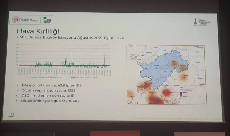 Bununla beraber, Sanayi ve Teknoloji Bakanlığına bağlı İzmir Kalkınma Ajansı (İZKA), Aliağa’daki Bozköy Ölçüm İstasyonu’nda Ağustos 2021 - Eylül 2024 tarihleri arasında 1355 gün boyunca hava ölçümleri yaptı.