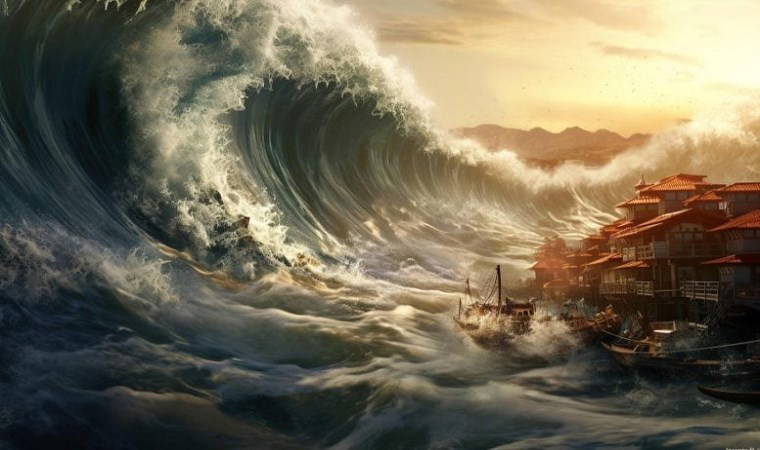 Günümüz bilim insanları, bu denizden gelen dev su baskınına “tsunami” diyorlar.