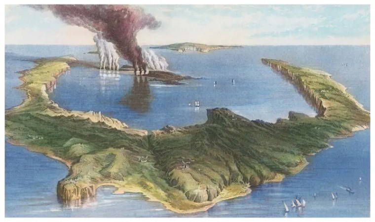(Thera yanardağının patlamasını gösteren bir temsili resim)