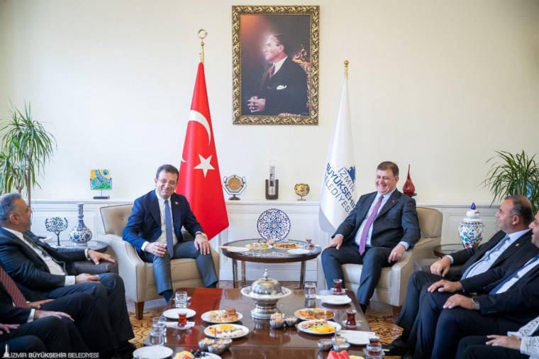 İzmir Büyükşehir Belediye Başkanı Dr. Cemil Tugay, 93’üncü İzmir Enternasyonal Fuarı’nın (İEF) onur konuğu kenti İstanbul’u temsilen İzmir'e gelen İstanbul Büyükşehir Belediye Başkanı Ekrem İmamoğlu’nu Egemenlik Evi’ndeki makamında ağırladı.