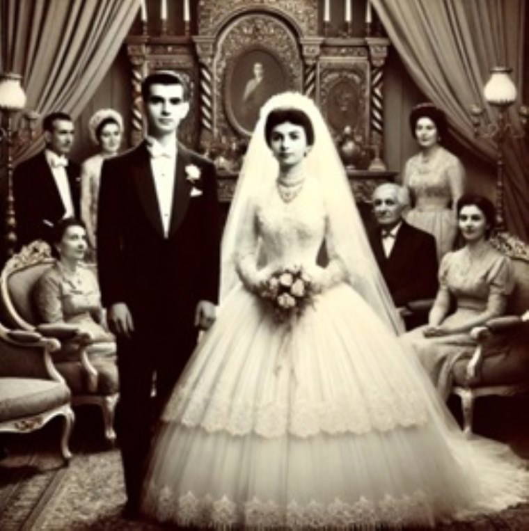 (Yapay Zekanın (AI) çizdiği 1960’larda bir gelin damat)