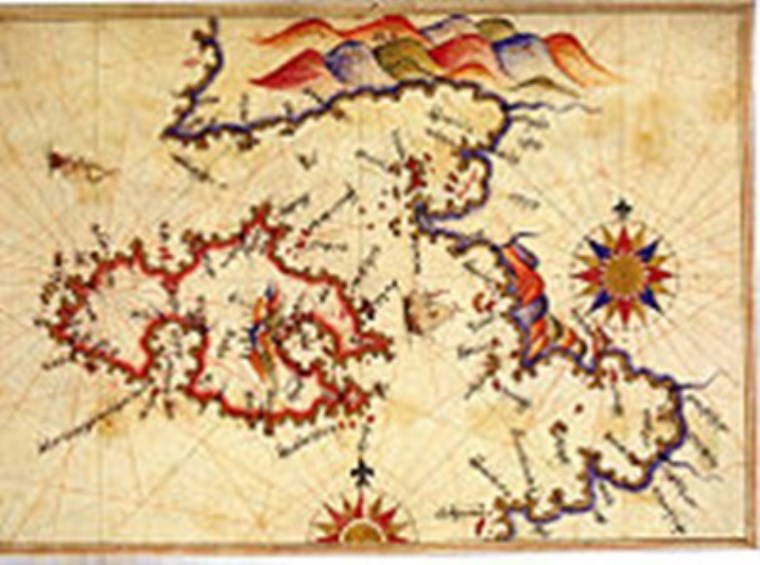Midilli Adası ve Batı Anadolu kıyılarının eski bir haritası
