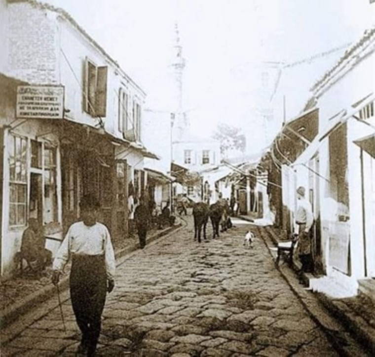 19. yüzyıl sonu Midilli kenti çarşısı-arkada Ulu Cami
