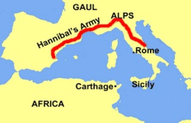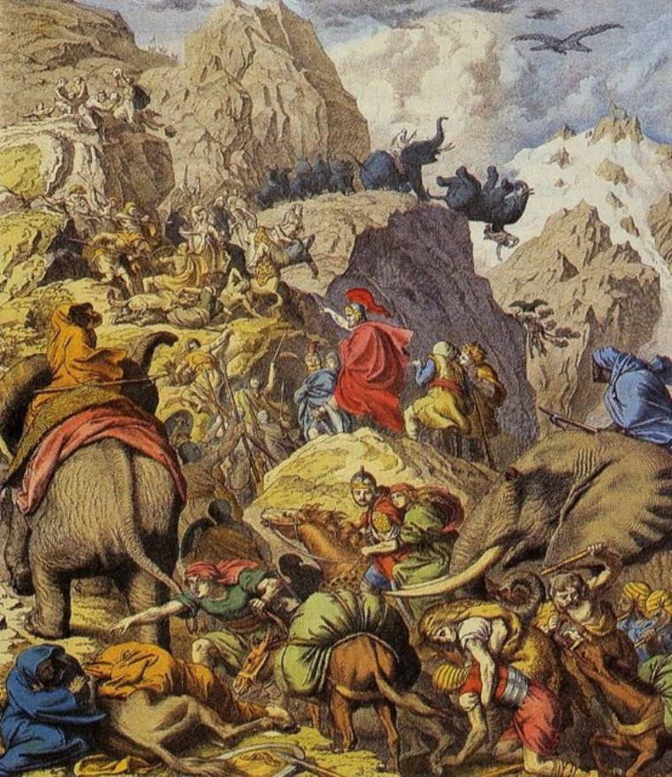 Ordusunun önemli bir kısmını soğuk uçurumlu dağ yollarında kaybetmesine rağmen askerlerinin ve fillerinin dik Alpleri aşmasını sağlamıştı sonunda.