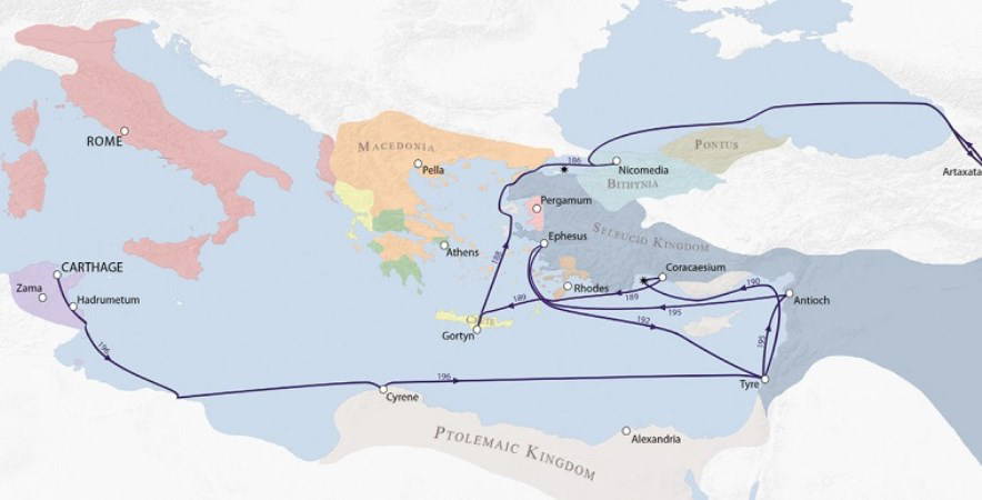“Hannibal Romalılar’ın eline düşmemek için önce Bythinia (muhtemelen Prussia/Bursa) sarayından kaçmayı düşünür.