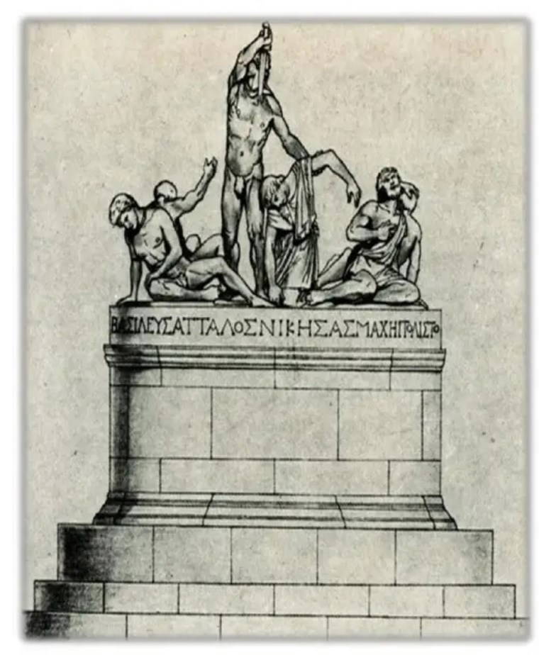 Pergamon Akropolüne konulmuş “Ölen Galatlılar” anıtının temsili resmi.