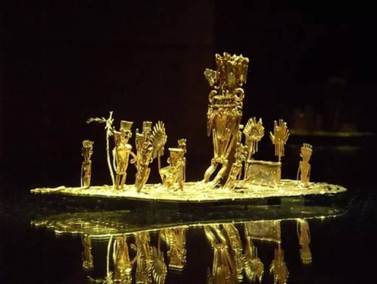 Kolombiya yerlilerinin kutsal gölü üzerinde yüzen altından yapılmış sal figürü. Bogoto-Kolombiya-Altın Müzesi