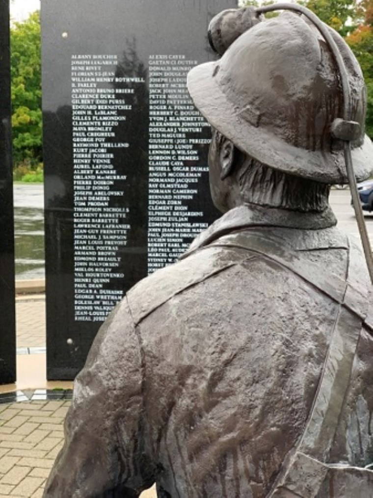 Siyanürcü-uranyumcu ahtapotun kollarından biri olan (Daha sonra İngiliz-Avustralyalı zehirci BHP eline geçen) Rio Algom’un Kanada’daki Uranyum Madenlerinden birinde-Elliot Lake- radyoaktiften etkilenen, kaçının öldüğü bilinmeyen işçilerin adı yazılı kurbanlar için yapılmış anıt.(Foto: Miningwatch-2021)