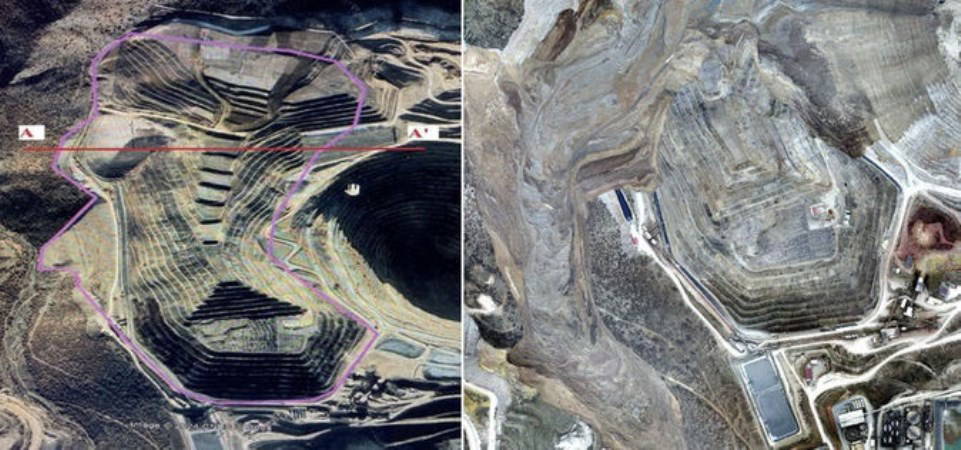 Maden sahası zehirli toprak kaymadan önce (2021) ve sonra (2024)