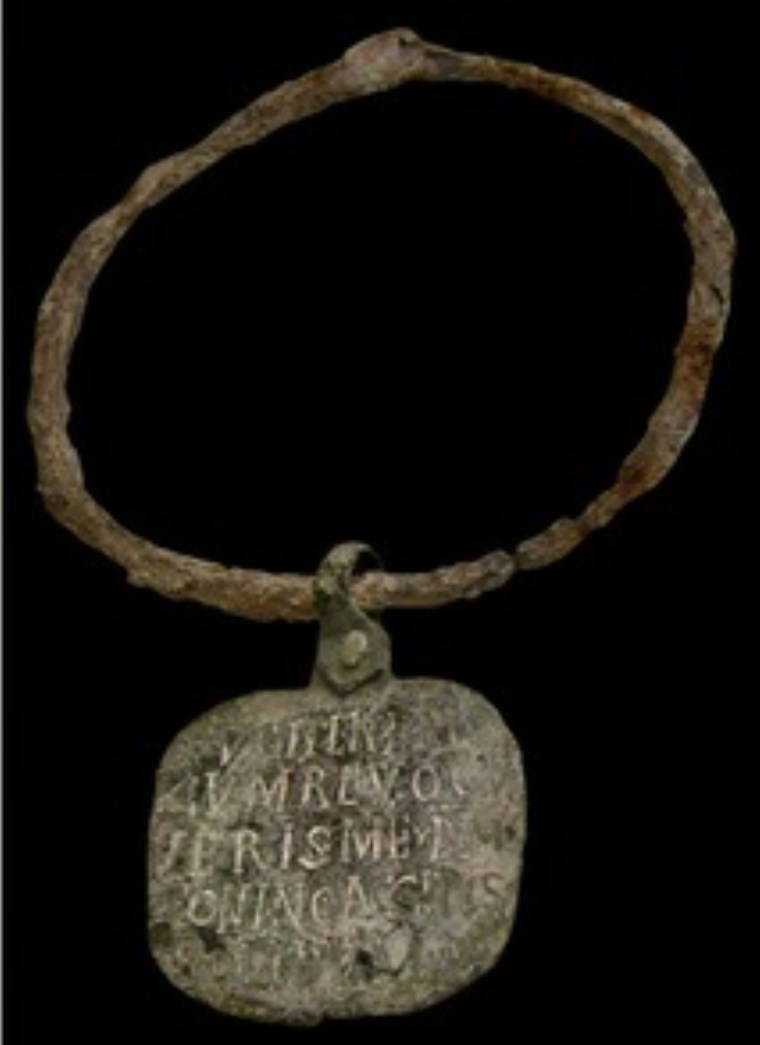 Roma’da bir köle sahibinin, hanesinden kaçtığında kolay yakalanması için kölesinin demirden yapılmış boyun bağına: «Ben Kaçtım. Beni Yakalayın. Efendim Zoninus beni ona götürdüğünüzde size bir altın para verecektir”, yazan bir ibare kazıtmıştı.