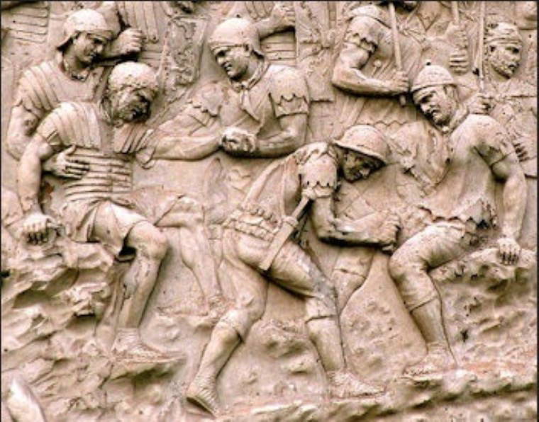 Romalı koca komutan P.L.Crassus Mucianus da kölelerle birlikte yürüyemeye zorlandı.
