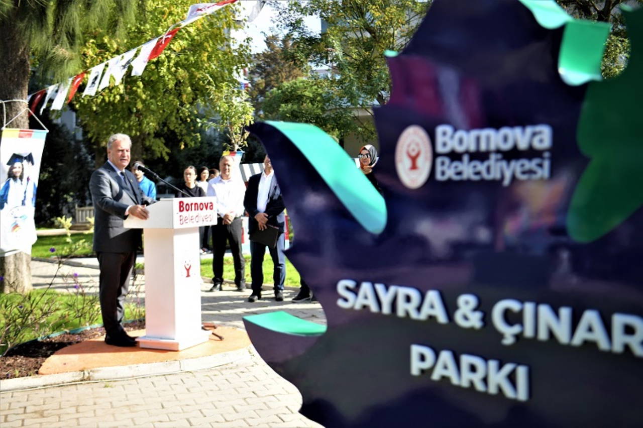 Sayra ve Çınar kardeşlerin isimlerini parka vererek, anılarını yaşatmak istediklerini söyleyen Bornova Belediye Başkanı Dr. Mustafa İduğ, “Çınar ağaçlarını dikerek hepimizin buradan geçerken onları hatırlamak, hatırlatmak istedik. Belediye başkanı olarak yaşanan bu acılar karşısında yapabileceğimiz en önemli şey kentsel dönüşüm. Bu konuda Türkiye'nin derhal adım atması gerektiğini düşünenlerdenim. İnşallah yakın zaman içerisinde yerel yönetimler yasasındaki değişikliklerle bu kentsel dönüşüm yasası devreye girer de bizler de yapılması gerekenlerin, bir zorunluluğu da ortaya koyarak yapılmasını sağlarız. Sayra ve Çınar’ın anılarını ölümsüzleştirmek için yaptığımız çalışmalarda emeği geçen herkese teşekkür ederim” diye konuştu.