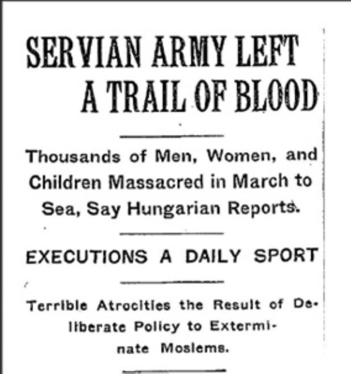 31 Aralık 1912-New York Times Gazetesi Başlığı: Sırp Ordusu katliamı