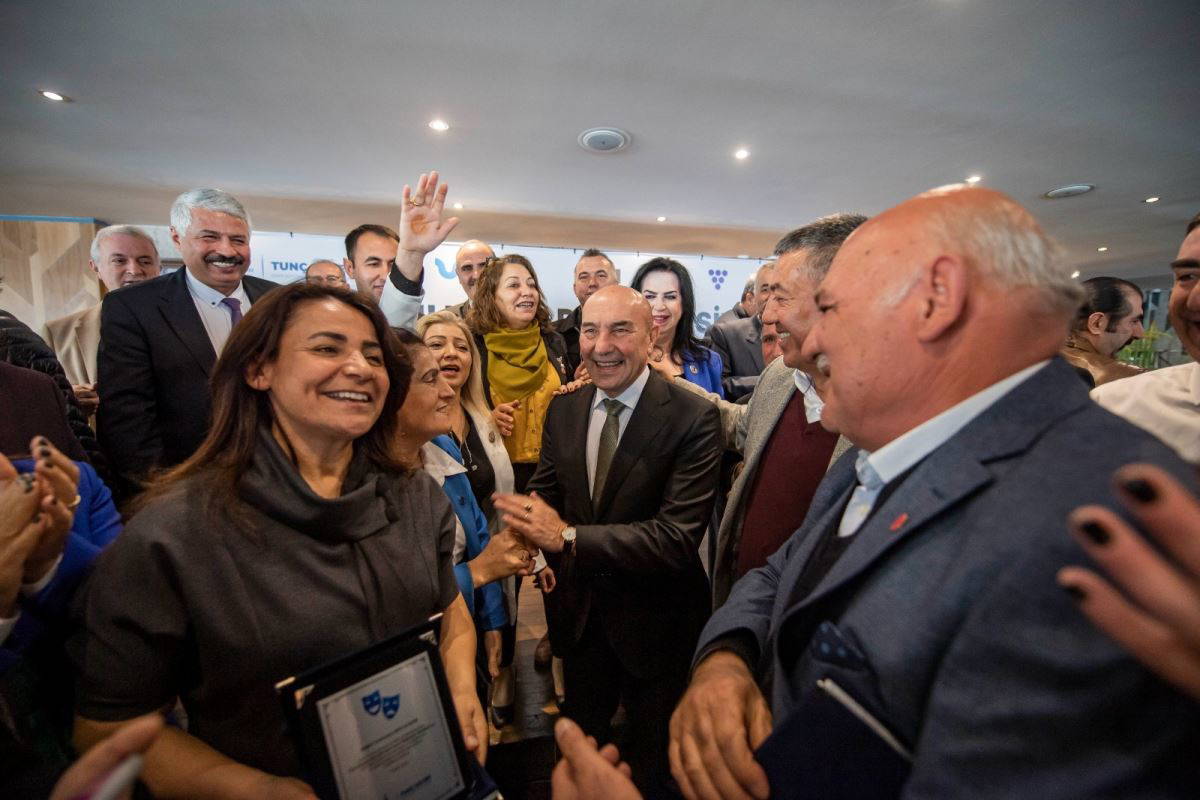 İzmir Büyükşehir Belediye Başkanı Tunç Soyer, İzmir’in kurtuluşunun 100. yıl dönümü için hazırlanan “Kurtuluştan Demokrasiye İzmir Muhtarlar Müzikali”nde oynayan 100 muhtarla bir araya geldi. Başkan Tunç Soyer, Nefes Restoran’daki buluşmada muhtarlara ve müzikalin eğitmenlerine teşekkür plaketi verdi. Muhtarlar “En büyük başkan Tunç Başkan”, “İşte Başkan gerçek Başkan” sloganları attı.