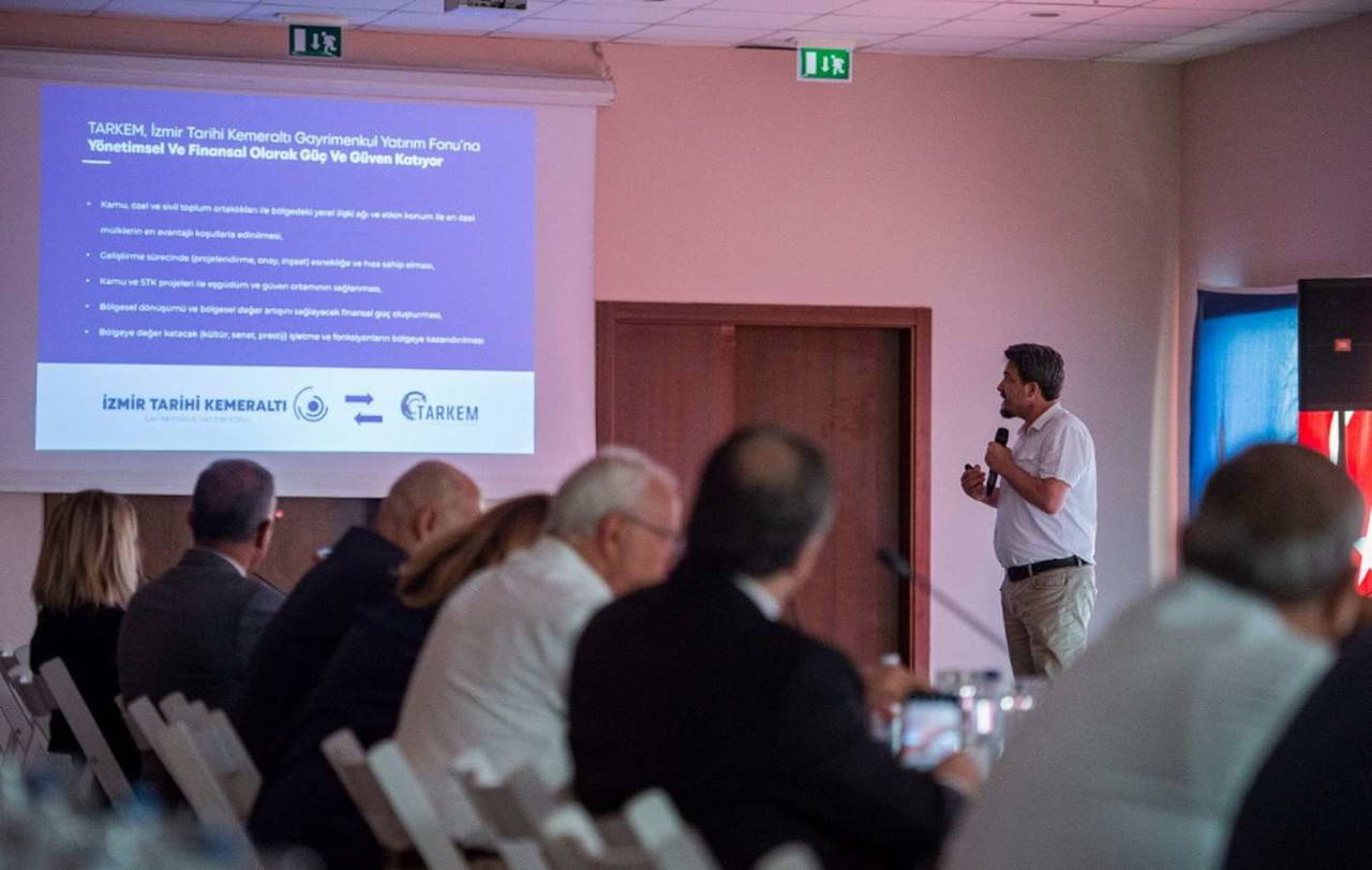 TARKEM Genel Müdürü Sergenç İneler de toplantıda sunum yaptı. Kemeraltı'nın gelişmesi için bu şirketi işin içine dahil ettiklerini belirten Sergenç İneler, “Tekil yapı ölçeğinde toplamda 21 yapıda restorasyon çalışmaları yapılacak. 21 yapıdan ikisinin restorasyonu yapıldı. 9'unun restorasyonu devam ediyor. İki yıl içerisinde bu 9 yapıdan 5'i bitmiş olacak. 21 yapı alanı değiştirmeye haiz, tekil yapı ölçeğindeki en önemli projeler. Burası UNESCO Dünya Mirası Geçici Listesi'ne girdi. Burada restorasyon arayışı ve finans ihtiyacı daha da arttı. Kemeraltı'na yatırım yapanın da yüzünü gülümsetecek. Yatırım yapana da para kazandıracak. Bunu yaparken bölgedeki esnafa, zanaatkara, hijyenik, temiz ve güvenli ve yüksek kalitede hizmet sunacak” dedi.