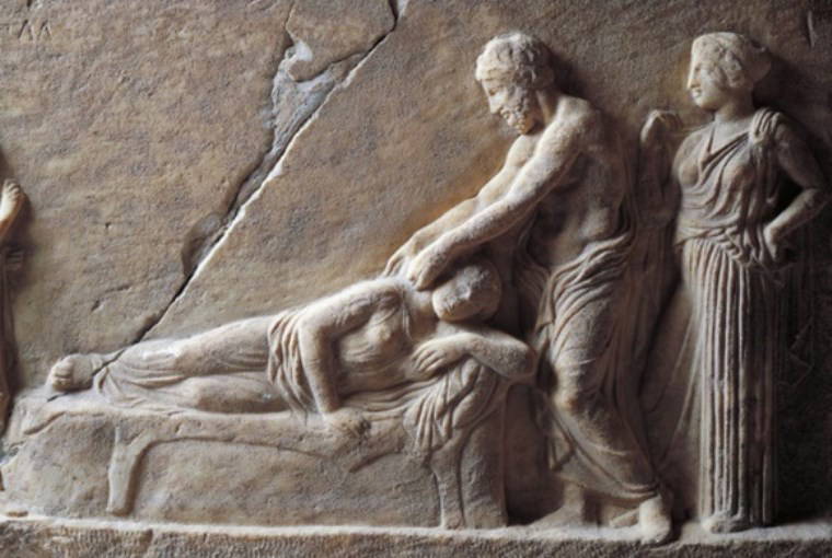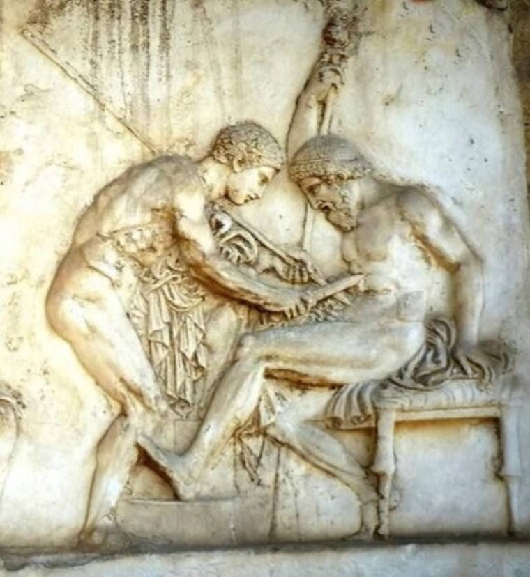 (Akhileus Telephos’un baldırına pas sürüyor İ.Ö.1.yüzyıl Napoli müzesi).