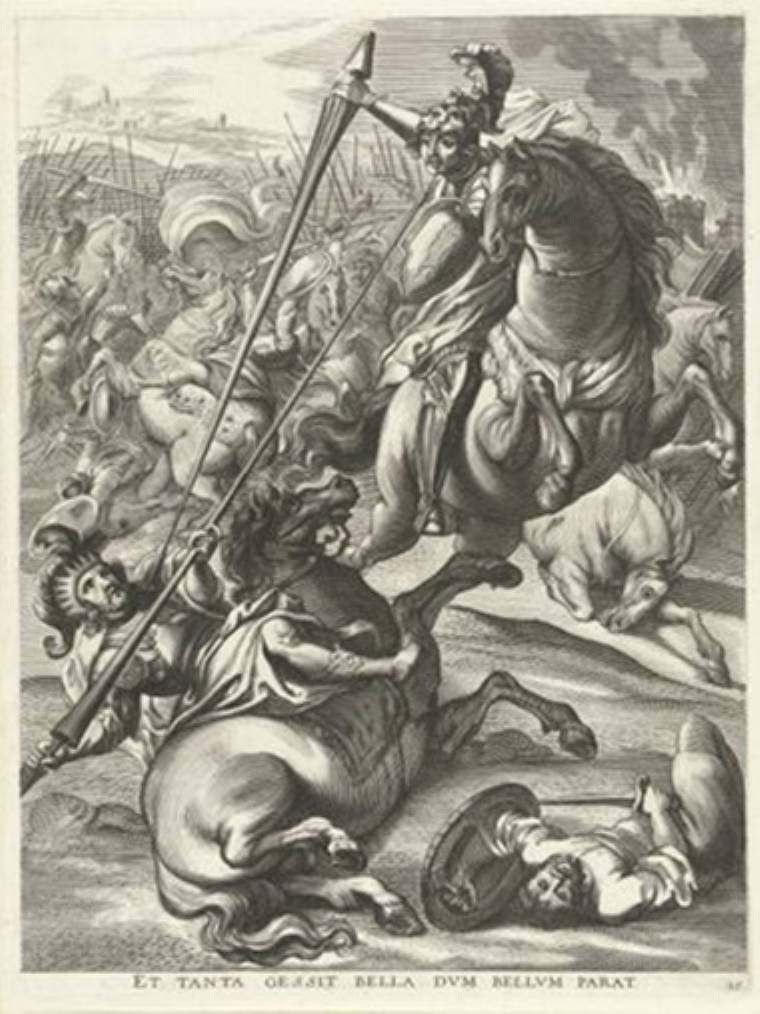 Teuthrania Savaşı. Akhileus’in (Aşil) Telephos’u yaraladığını temsil eden bir resim