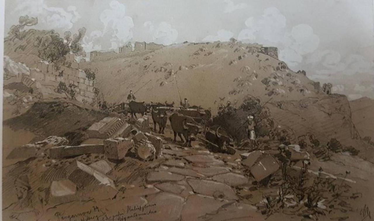 1864 yılında Bergama-Dikili yolunun yapımı için yöreye gelen Carl Humann adlı Alman mühendis tarafından fark edilen güzelim görüntülere sahip frizler 1878 yılına kadar, 1869 ve 1874 de çıkarılmış Osmanlının Asarı Atika Nizamnamelerine (Eski Eserler Yasaları) aykırı olarak yurt dışına, Berlin’e kaçırıldı.