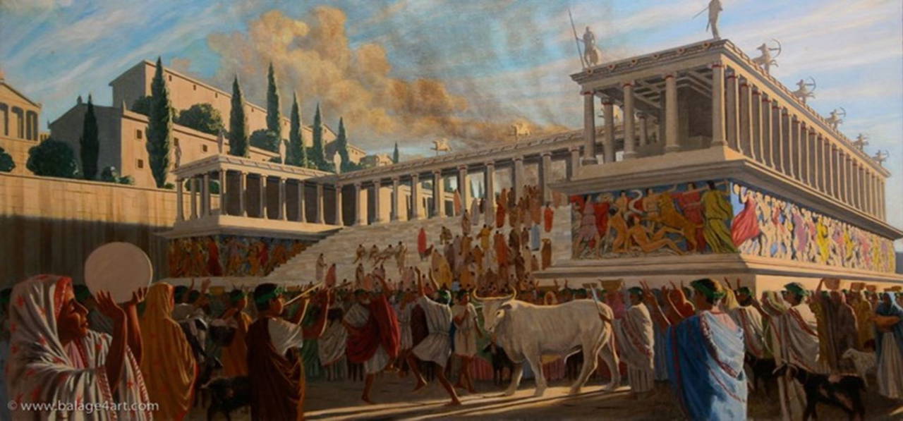 At nalı biçiminde, 35*33*~12 mt boyutlarında bir yapı olan Sunak tapınma yeri olmaktan öte Baş Tanrı Zeus için adanan kurbanların sunulduğu yerdi.