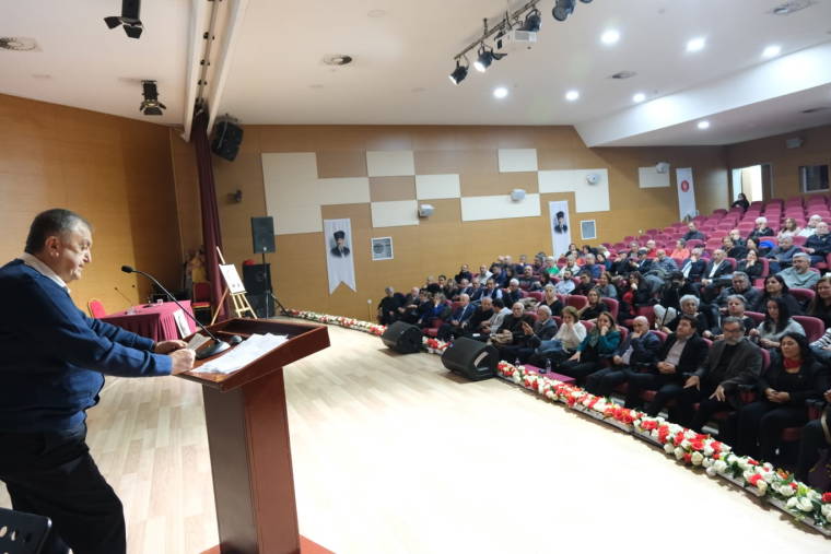 26 Ocak Pazar günü Ankara’da Keçiören Belediyesi Yunus Emre Kültür Merkezi Tiyatro Salonunda gerçekleşen panel öncesi ADD Keçiören Şubesi Başkanı Halime Şentürk ve Ankara CUMOK Dönem Sözcüsü Nejdet Özer açık konuşması yaptı.