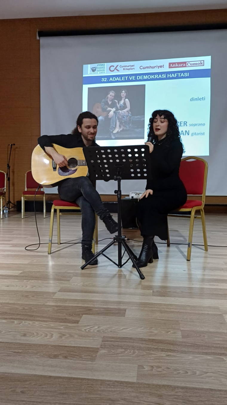 Ardından soprano Tuğba Ezer ve gitar sanatçısı Duru Yavşan’ın dinletisi salonu dolduran yurtseverlerce ilgiyle izlendi, dinlendi.