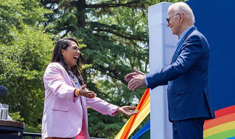 Biden, LGBTQİ+ toplumu için eşitliğin tesis edilmesinin yönetiminin en önemli önceliği olduğunu belirtti. Yönetimi döneminde evlilik eşitliğine saygı yasasını imzaladığını, transların ABD ordusunda görev almasını engelleyen yasanın kaldırıldığını, barınma, istihdam, sağlık hizmetleri, eğitim ve adalet sistemindeki hakları güçlendiren kararların alındığını hatırlattı.
