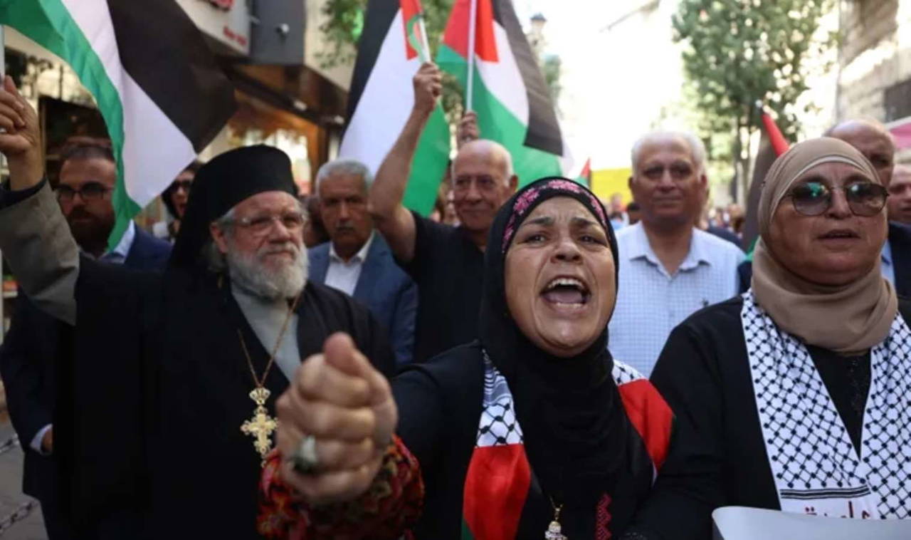Gösteriye cübbesiyle ve boynunda hacıyla katılan Hristiyan din adamı Abdallah, Filistin halkının bir kısmının Gazze'de olduğunu vurgulayarak "Biz Gazze'yiz, Gazze de bizdir. Savaşın ortağı ABD'nin buraya gelmesine karşı çıktığımızı göstermek istiyoruz" dedi.